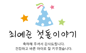 ★첫돌행사일 경우 1년된 생일을 기념하므로 태어난 다음해 년도로 작업됩니다.